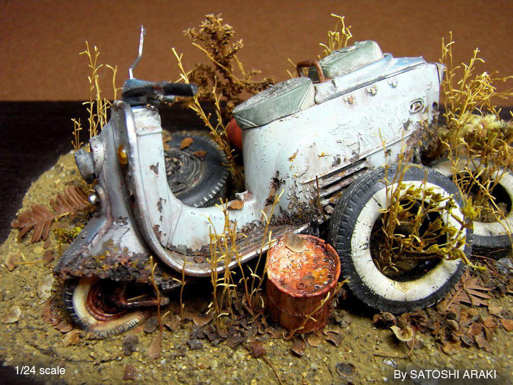 45 yaşındaki Tokyolu artist, kasaba, bisiklet, otomobil gibi hemen hemen her şeyi minyatürleştirerek geçimini sağlıyor. Ama Satoshi’nin özellikle odaklandığı konu, kentsel bozukluklar, çürümeler ve kaotik şehir hayatı.